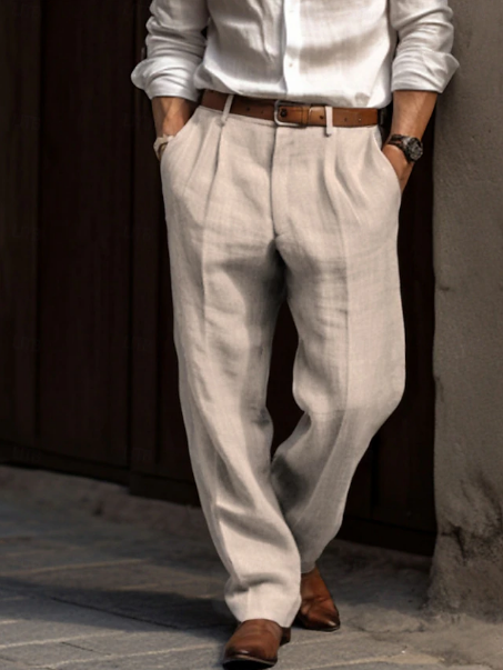 Homens Calças de linho Calças Calça verão Calças Plissadas Calças sociais Bolso frontal Perna reta Tecido Conforto Respirável Casual Diário Feriado Moda Básico Preto Branco de 2025 por R$187.99 –P1